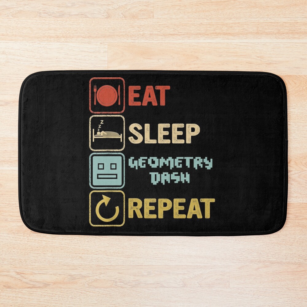 Funny Eat Sleep Geometry Dash Repeat Retro Vintage Geometry Dash Dad Gift Fathers Day Kids Birthd Bath Mat